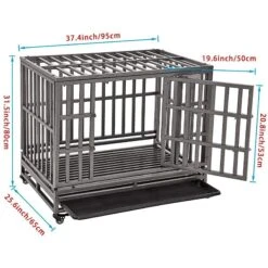 SMONTER Heavy Duty Metal Anxiety Indoor & Outdoor Large Breed Dog Crate, Dark Silver