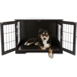 SMONTER Heavy Duty Metal Anxiety Indoor & Outdoor Large Breed Dog Crate, Dark Silver