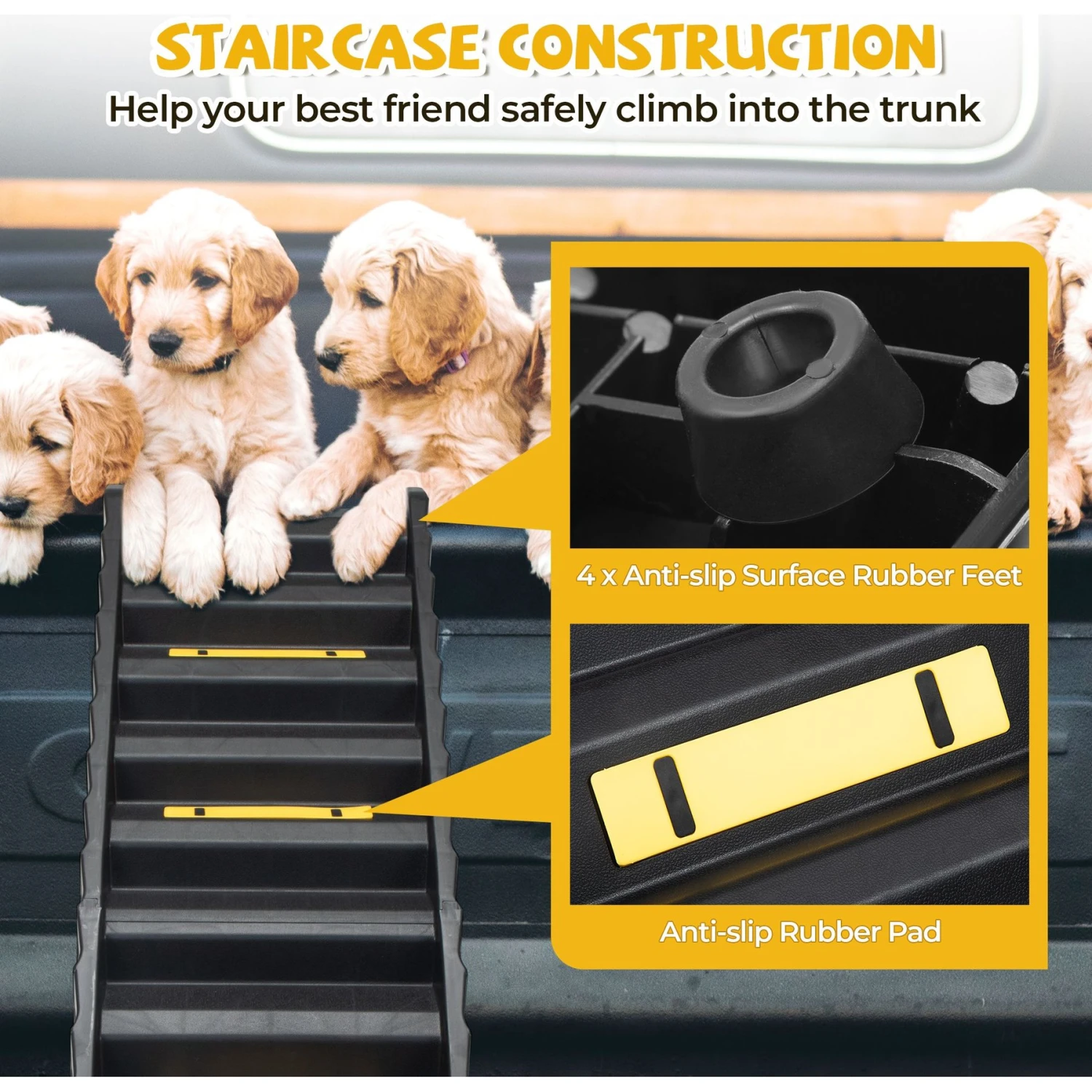 Coziwow Foldable Dog Car Ramp With Stairs, Black, 61-in