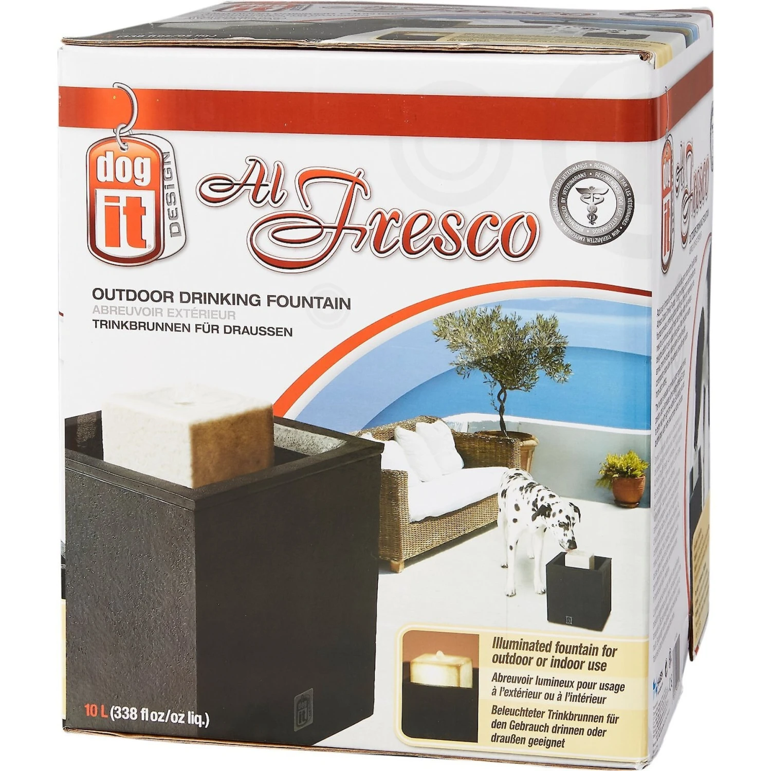 - Fountain is elevated to provide a better ergonomic drinking position and is illuminated with an energy-efficient LED light to better help with night-time visibility.