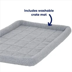 - From Frisco by Chewy. Dog crate and mat kit includes portable crate, comfy crate mat, removable base pan, crate divider and features a fold-and-carry design with adjustable handles to create a safe and comfortable place for your pup.