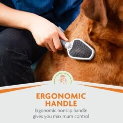 - Brush follows the natural contours of your dog’s body and helps to remove mats, tangles and loose hair.