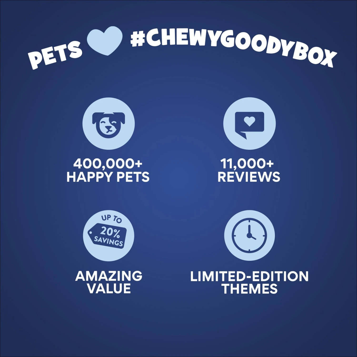 - Make the holidays even more fun and memorable with a variety of tasty treats and super-fun toys in this special seasonal edition of Goody Box by Chewy.