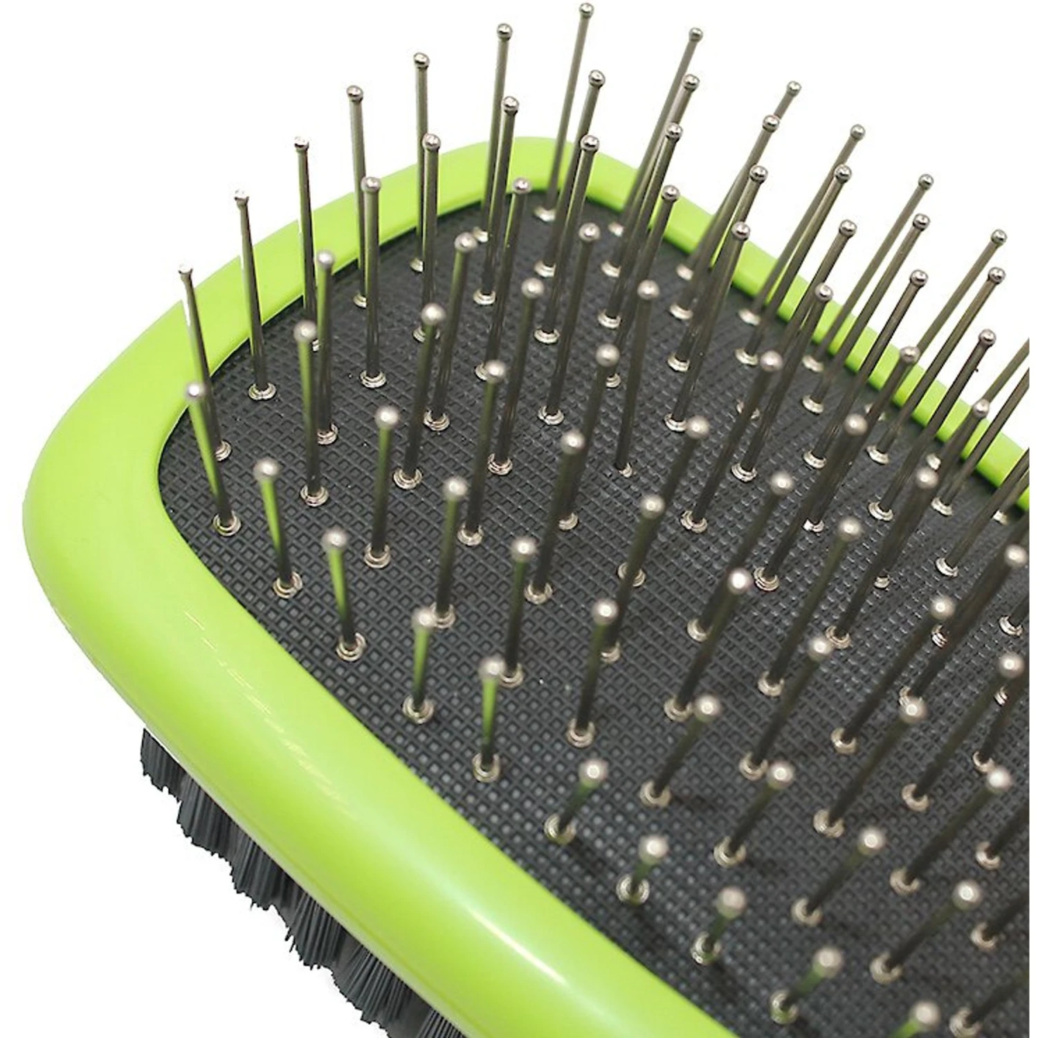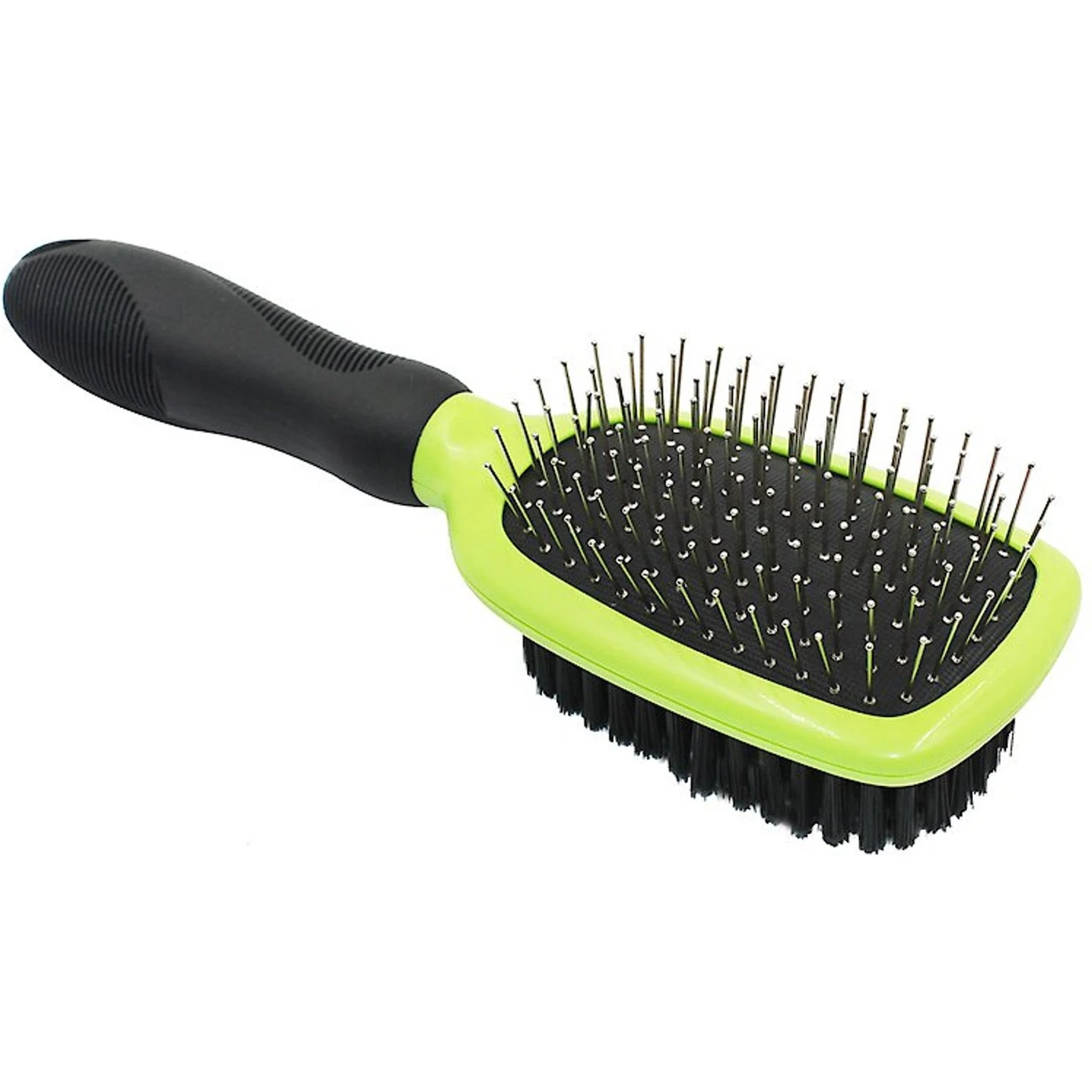 - Features two sides—a pin brush and a bristle brush—for twice the grooming fun.