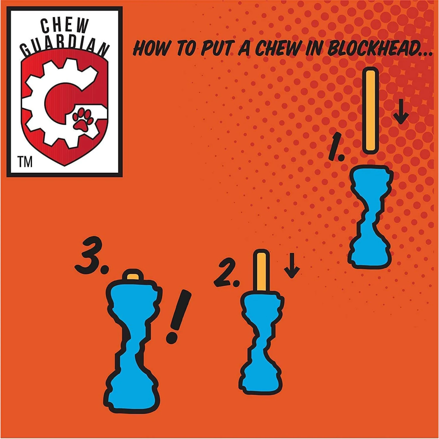 - To assemble, slide the chew in from the top center of the blockhead to hold it in place.