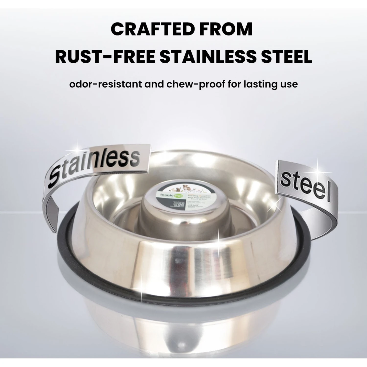 Iconic Pet Slow Feed Stainless Steel Dog & Cat Bowl, 2 Count