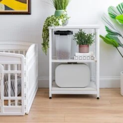 - Designed with a wide top and secure latch for easy opening, scooping and cleaning.