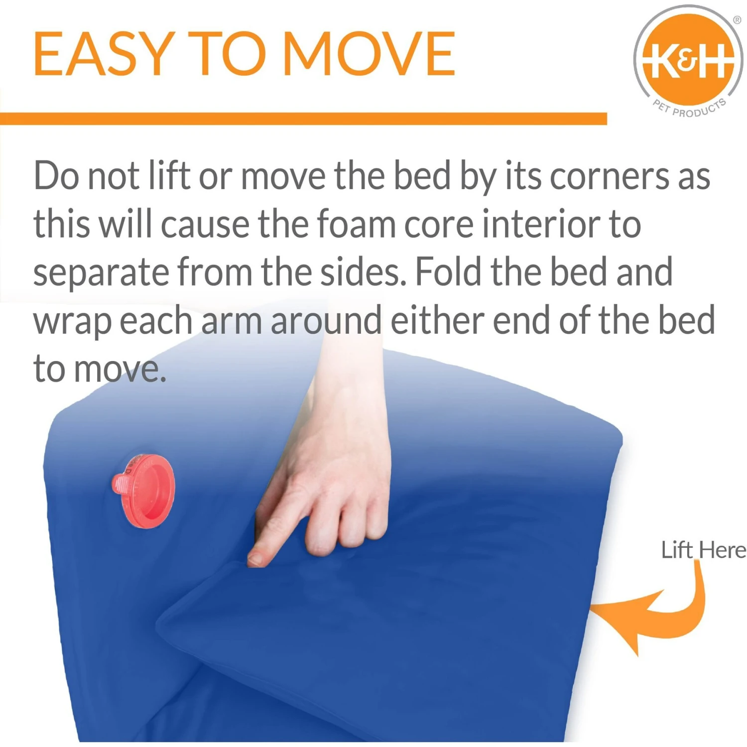 K&H is now keeping pets cooler than ever with the Cool Bed III. No electricity is required to operate the Cool bed III and these beds are attractively designed and allow a cool spot for dogs. Simply add the recommended amount of water through the easy fill cap and adjust the comfort with the easy air valve. The unique Cool Core diverts the liquid better than ever throughout the bed for advanced cooling power. The new nylon/vinyl exterior is tougher than ever! Being extremely affordable, the Cool Bed III is the choice for any dog owner looking to offer their pet a comfy, dry, cool place to relax. Recommended for indoor and outdoor use. This bed is not recommended for destructive pets.