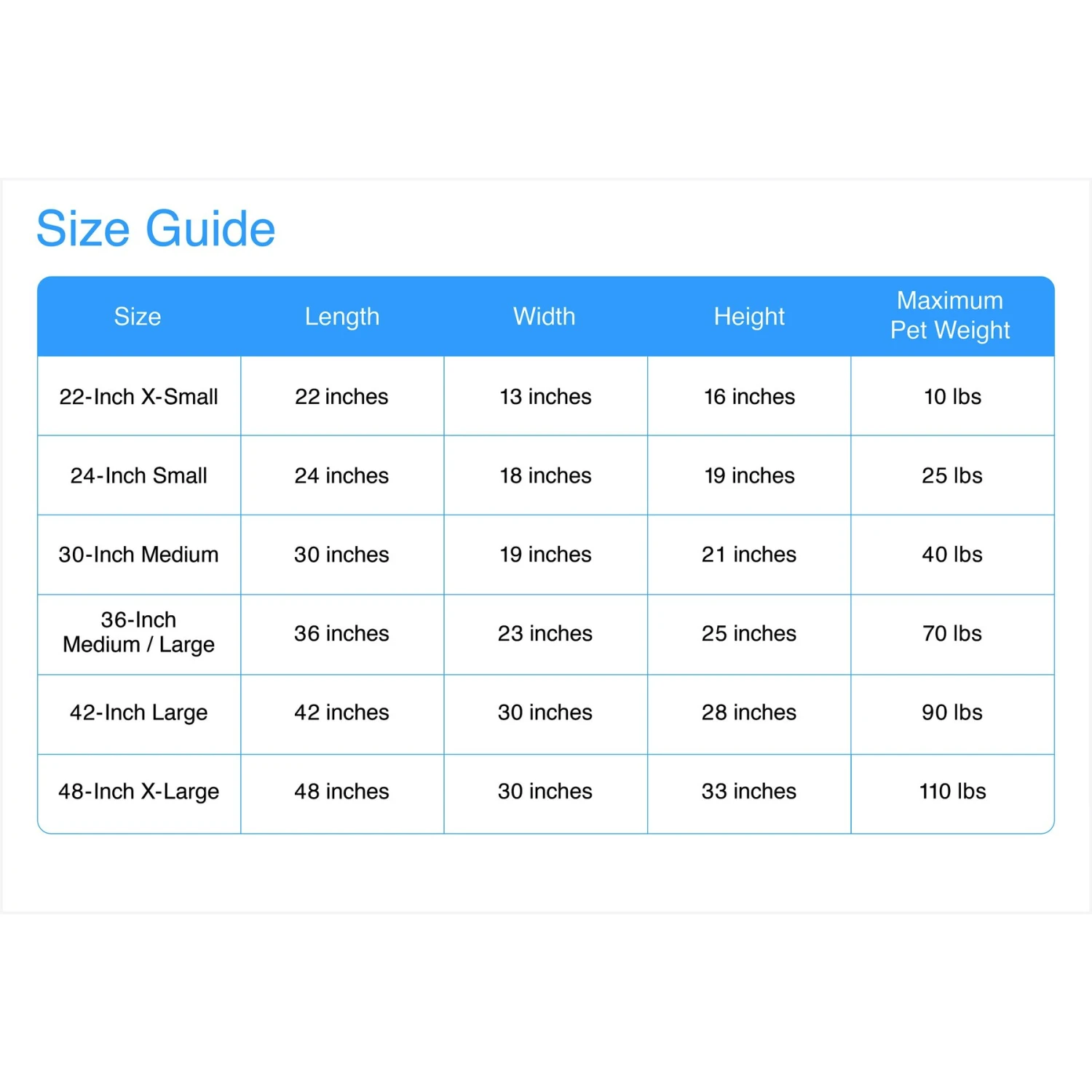| Size | S: 24-in L x 18-in W x 19-in H, XS: 22-in L x 13-in W x 16-in H, Med: 30-in L x 19-in W x 21-in H, Med/L: 36-in L x 23-in W x 25-in H, XL: 48-in L x 30-in W x 33-in H, L: 42-in L x 30-in W x 28-in H |