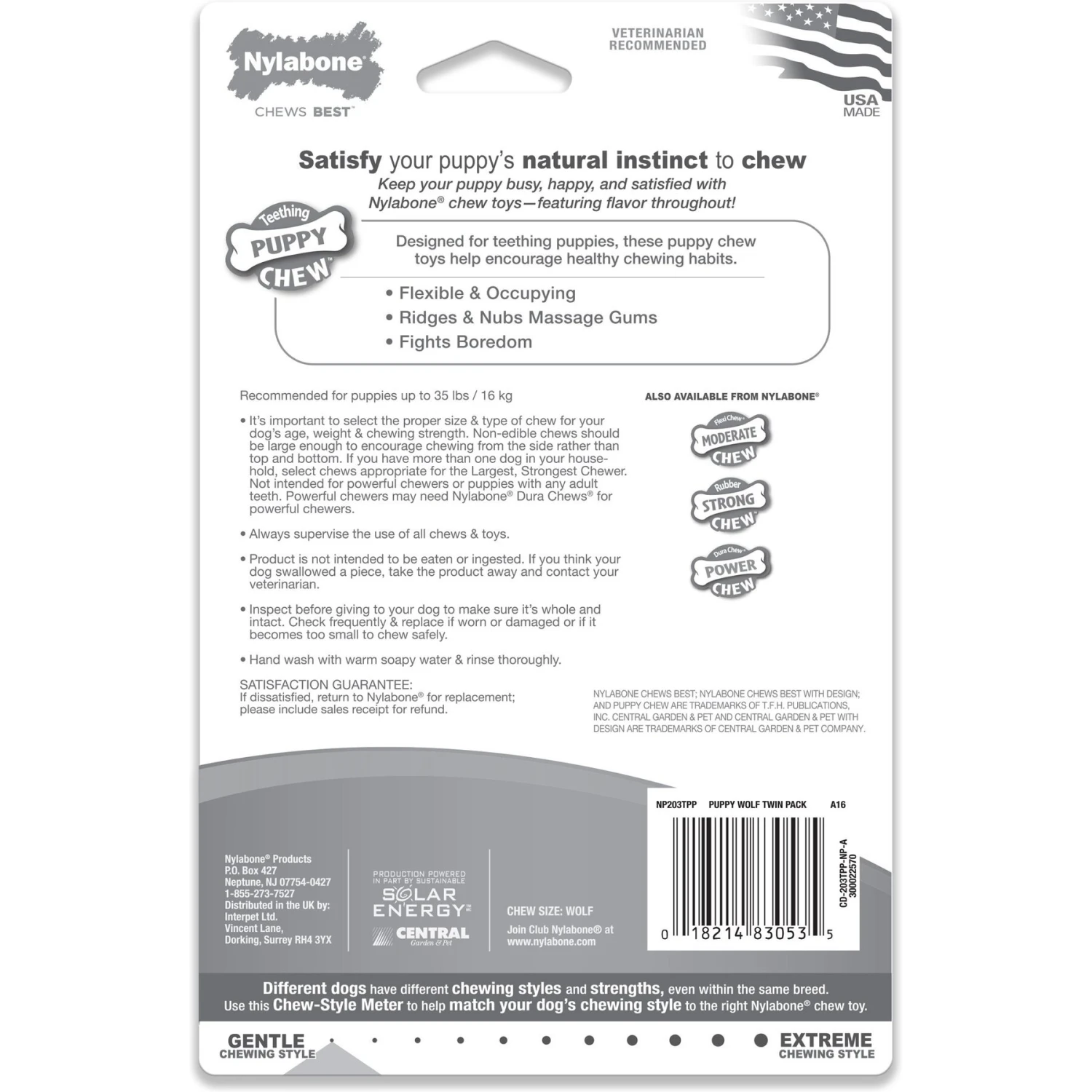 - This flexible chew toy and nylon bone help your puppy through the teething process.