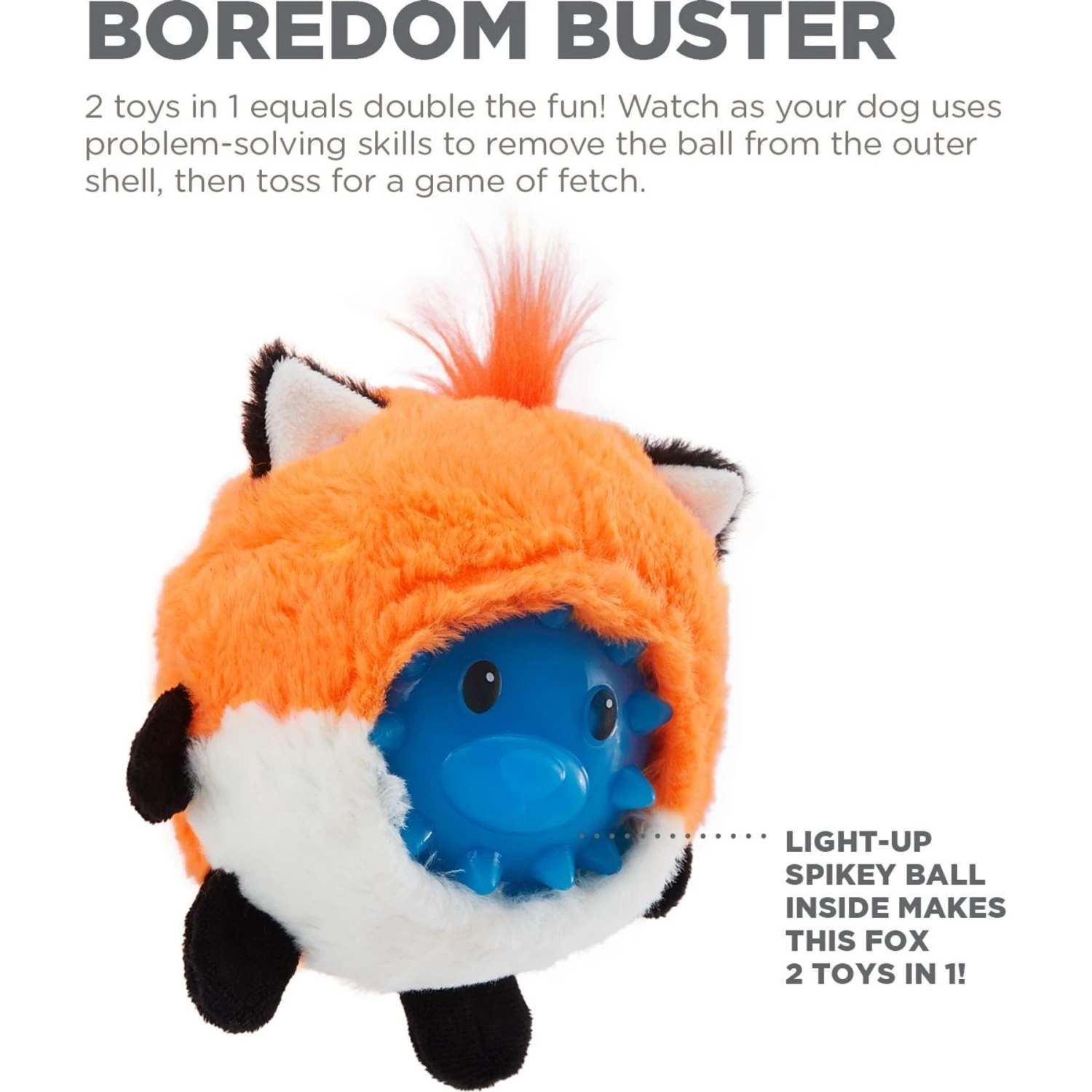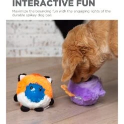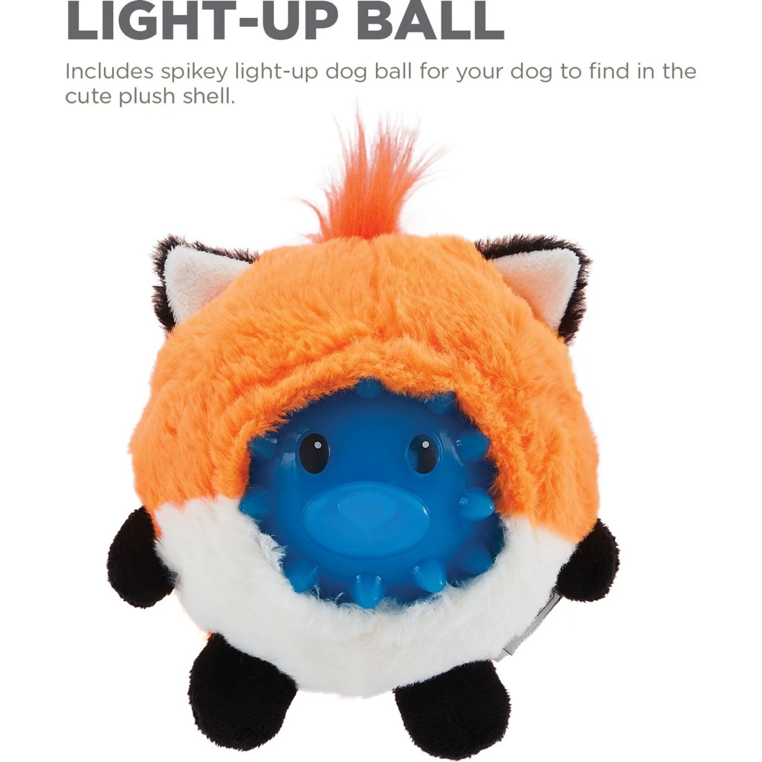 - Features a plush exterior and a spiked interior ball that lights up for double the fun!