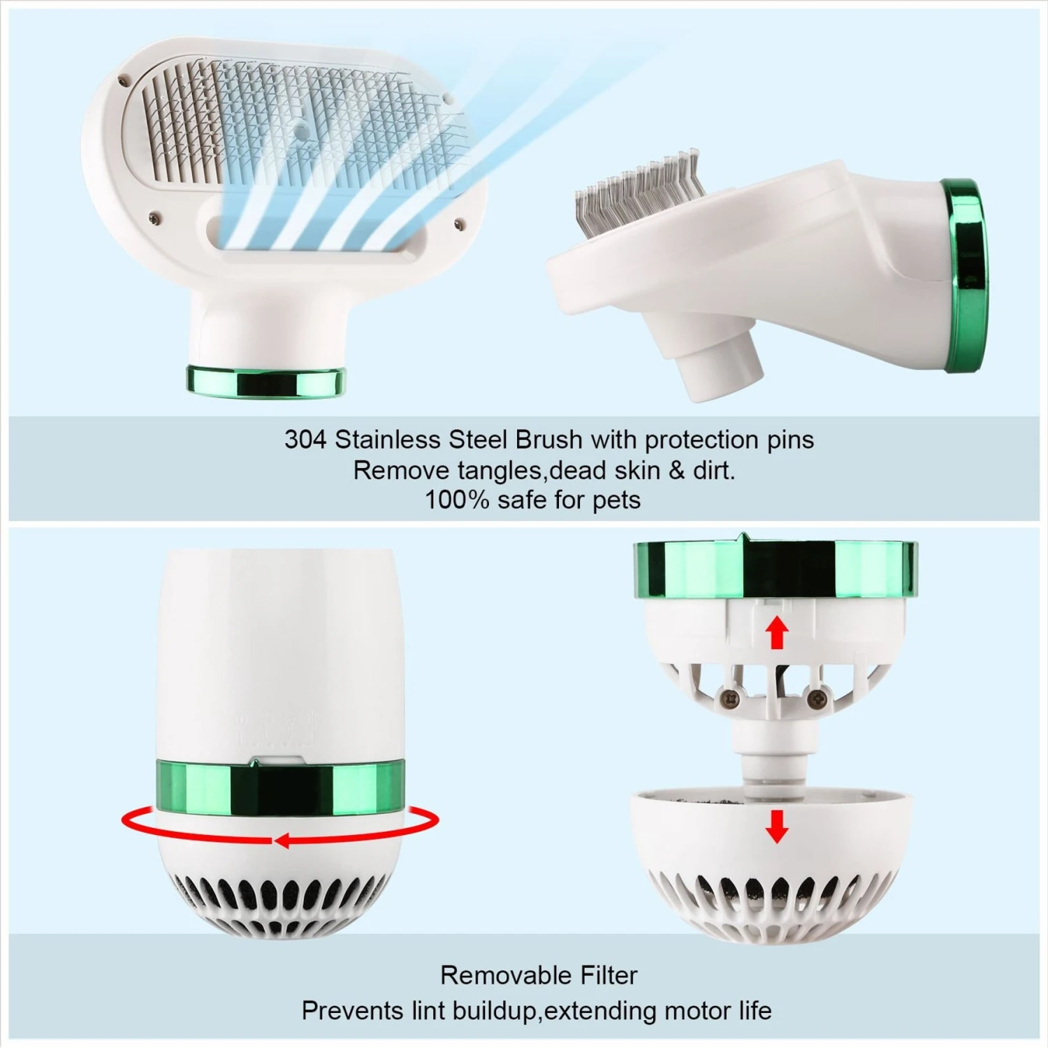 - Three-in-one pet grooming tool works as a hair dryer, slicker brush and deshedding tool to promote a healthy coat.