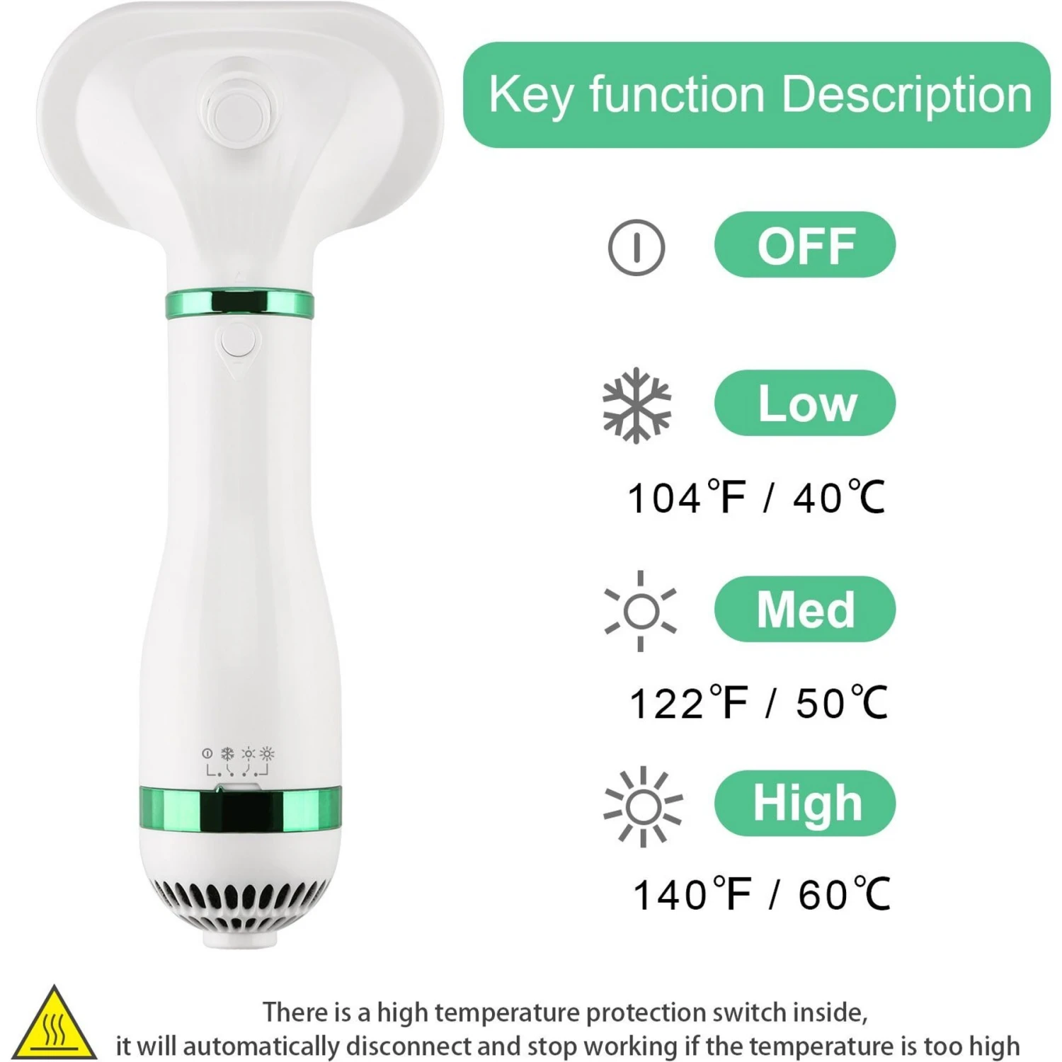 - Includes three adjustable temperature settings—Low 104°F/40°C, medium 122°F/50°C, and high 140°F/60°C—to meet your pet’s needs.