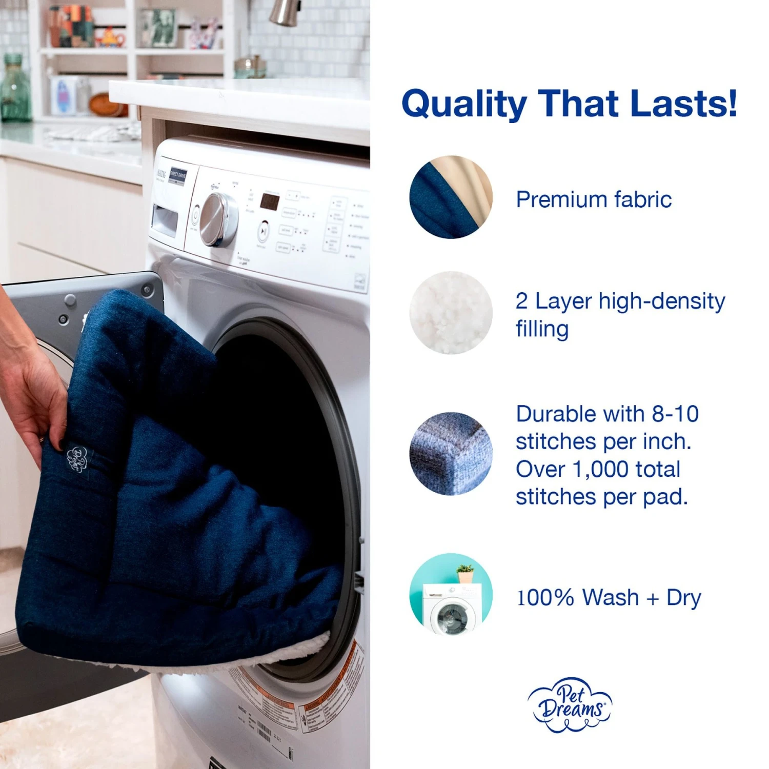 - Washable and reversible for double the use and half the washings with no zippers to open or covers to remove.