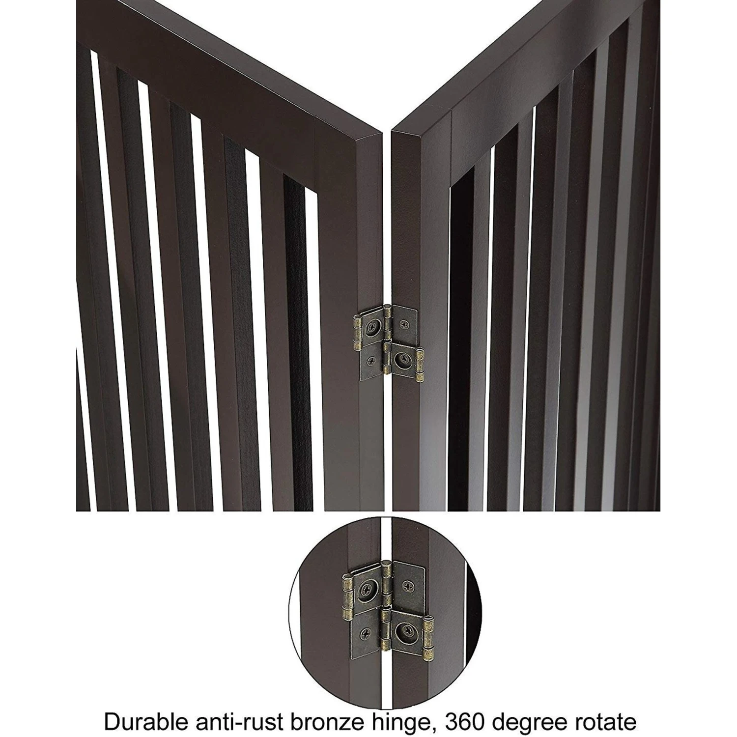 - Quality wood and dual hinges are highly durable, and the gate is stylish to fit in with your home’s decor.